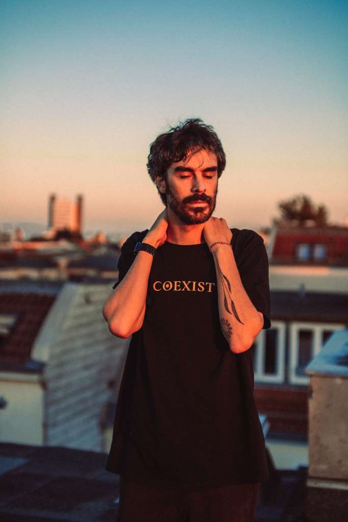 Coexist Shirt in Black, made from Organic Cotton. Printed in Germany.